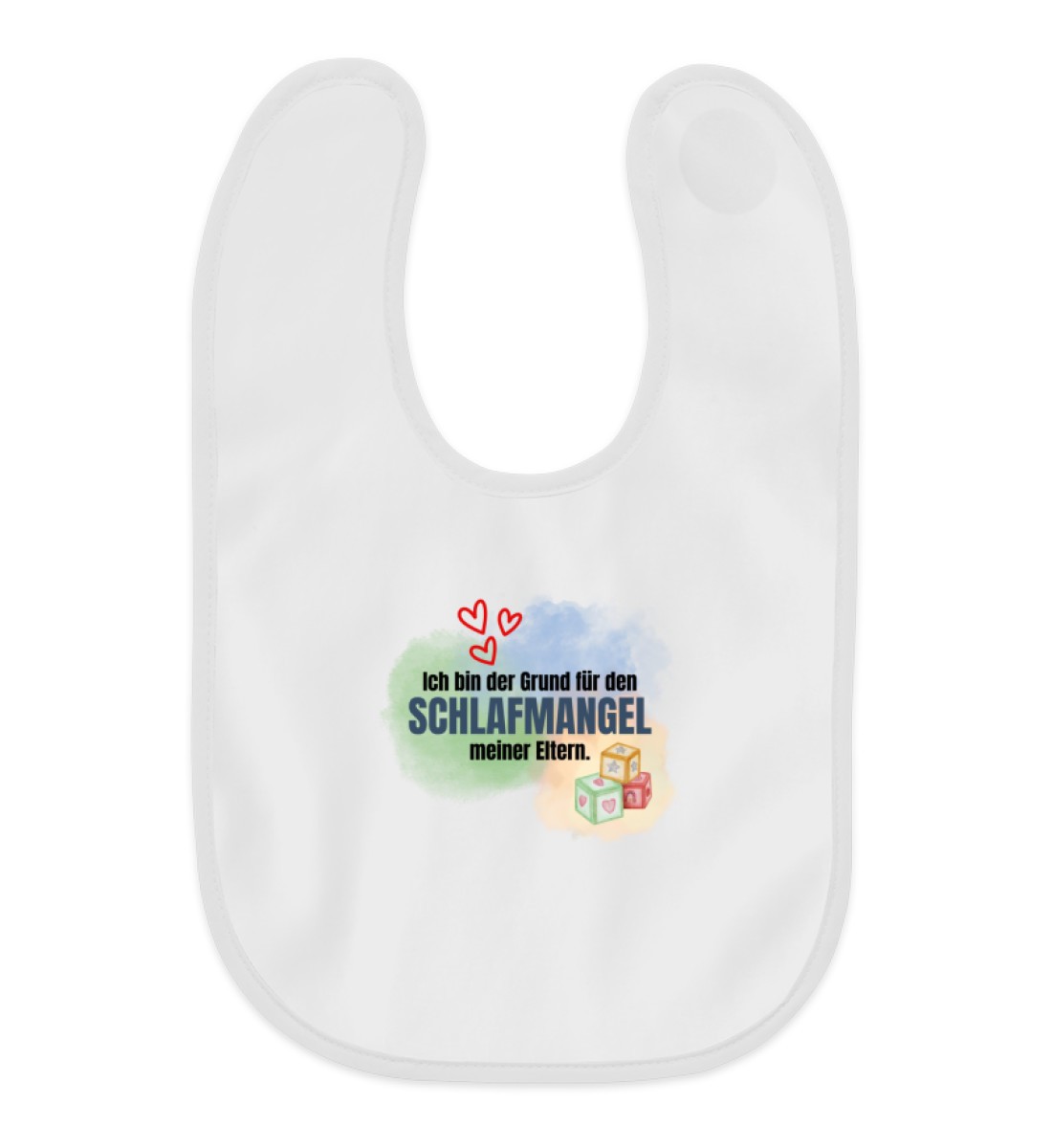 Praktisch, funktional und mit klarem Statement: Das Schlafmangel Lätzchen. Es schützt vorm kleckern, aber nicht vor der Ruhe in der Nacht. Ein Statement Artikel für Babys und für Eltern – jetzt zuschlagen!
